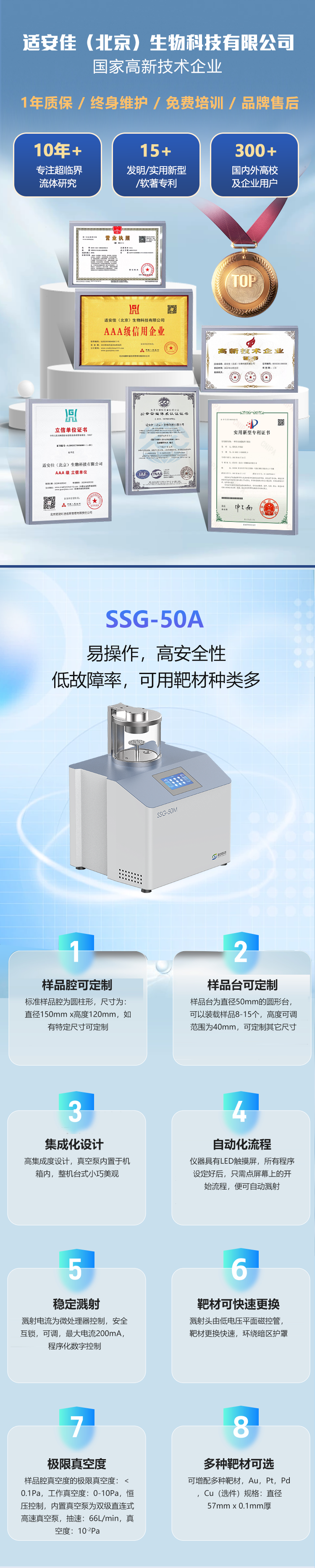 極限真空度:<10-3Pa,工作真空度:0.1-2Pa